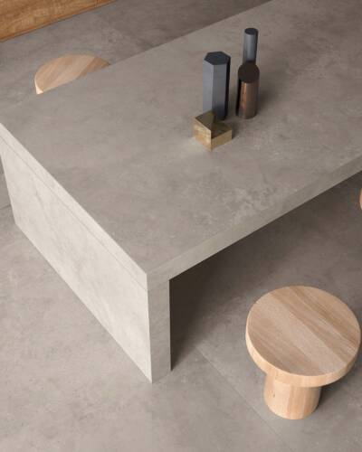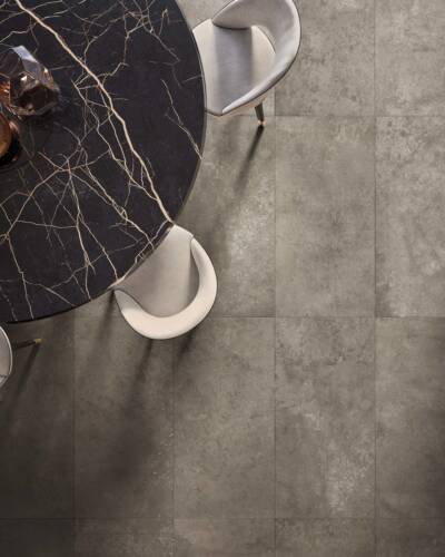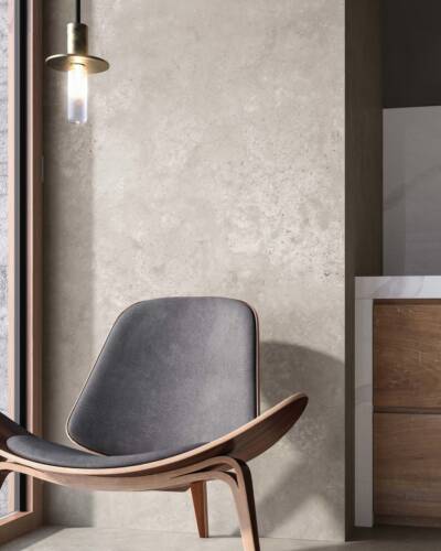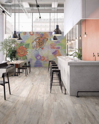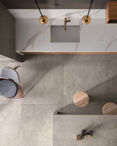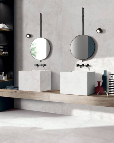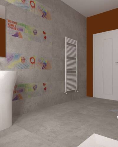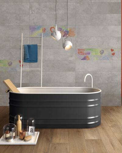 Inspired by the concrete blocks used in industrial building, I CEMENTI displays the characteristic traces of the natural concrete ageing process. Cutting-edge digital technologies are used in combination with special 3D graphics to reproduce the cracks, holes and stains typical of timeworn concrete on the surface of I CEMENTI tiles. The collection has also involved the collaboration of Tattoo & Visual artist Tiziano Colella, who designed the Titti 4 hyper-decorative capsule collection combining mural techniques with old-school tattoo iconography.