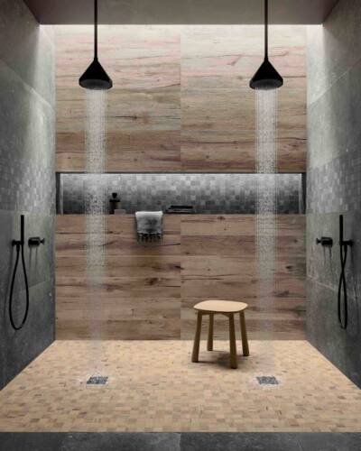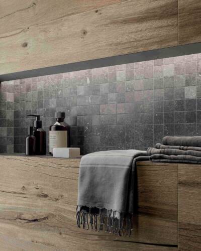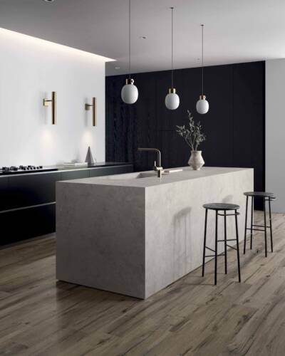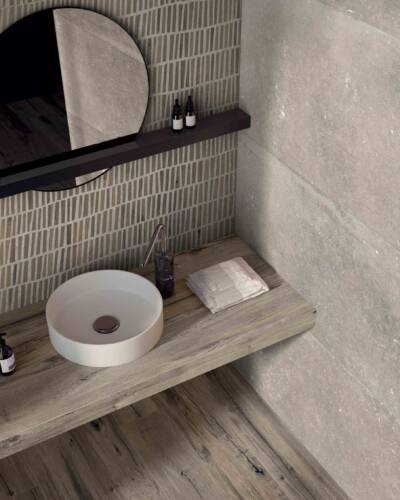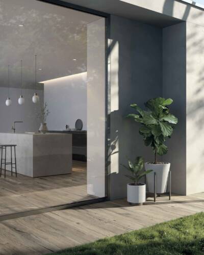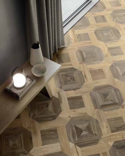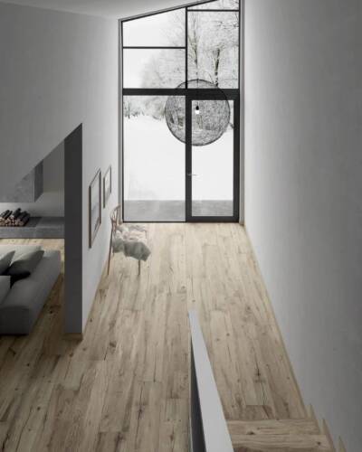 The NORDWOOD collection reproduces the imperfections and variety of details of reclaimed wooden planks, creating warm, authentic atmospheres that fit harmoniously into even ultra-minimalist contexts. NORDWOOD is enhanced by details that reproduce the original material with astonishing realism, such as contrasting cracks with an almost three-dimensional look. Along with the 20x120 cm and 26x200 cm plank sizes, the collection also includes the sophisticated Palace and Mansion decors, which in the 60x60 cm size recreate the luxurious appeal of panel parquet wood floors.